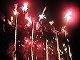 開始前からミッションインポッシブル(スパイ大作戦)の音楽がかかっていましたが、 音楽花火がこの曲に合わせて行われました。 虎の尾・Vの虎・牡丹などの組み合わせて、リズムよくあがりました。 僕のいた所は、ちょっと曲の音が聞こえにくいのが残念でしたが・・。 数カ所で黄緑にピカピカ光るを見て、みんな何あれ?と言ってましたが、 あれはトーチと言いまして、近くで見るとすんごい眩しくて、近づけないくらいです。 また、ここでも人工衛星(UFO)が一斉にあがり、大歓声。楽しいですよね。 最後は空中スターマイン。いわゆる冠菊の大スターマインです。 夜空いっぱいに埋め尽くされて、とても綺麗でした。 某BBSで、ビーチの海よりに座ると最後に楽しみがあると書いてありましたが、 この冠菊の時に後ろを振り返ると、口をぽかんと開けて、上を見ている観客の姿がみれるそうだ。 確かにそうだけど、花火と観客のどちらを見るのが良いですかね。(笑)