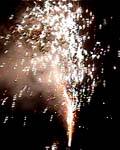 銀色の眩しい火花がパリパリと2M程の高さに上り、続いて球状に弾ける大きな火花が噴き上がる。 |