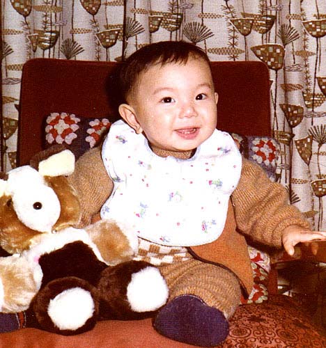 おめでとうございます!! みごとかくれキャラ(僕の赤ちゃん写真)に到達です。かあいいでしょ。(*^^*) この写真、carverとwskiの掲示板にも貼ってあるのだけれど、 「hey-chanの子供?」とか、初めて会った方が、僕の顔を見るなり、 「赤ちゃんの写真とそっくり・・今の顔に合成して作ったの?」なんて、おひおひ。^^;