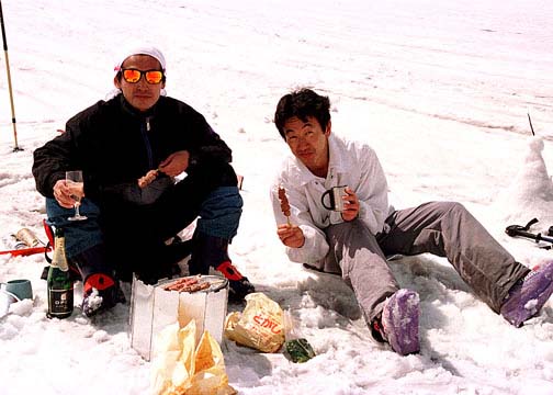 雪の中で冷やしておいた日本酒月山で乾杯!!